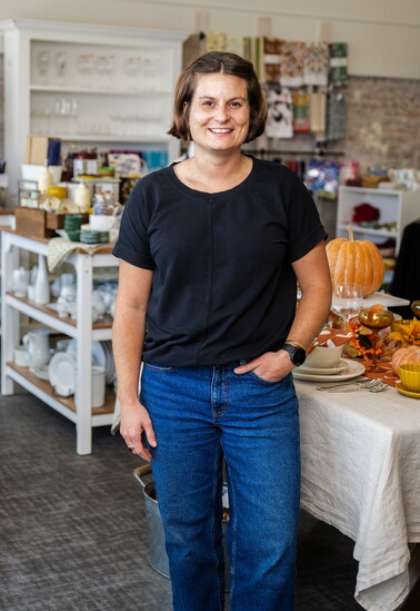 Shop co-owner Dana Smith says the business, which carries high-quality kitchen supplies and offers cooking classes, lost nearly 60 percent of its inventory from water damage when the tornadoes damaged the roof and windows of their retail space.