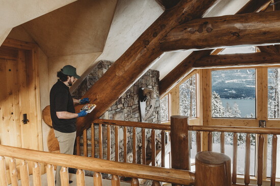Sandy Stash, a local homeowner, discovered this firsthand. Her 20-year-old log home, crafted from beautiful alder wood, was beginning to show the scars of time, sun, and Montana’s dry climate. She originally called Joshua to fix a few pieces of furniture, but she soon realized his palette could do much more.