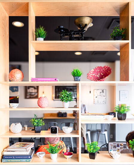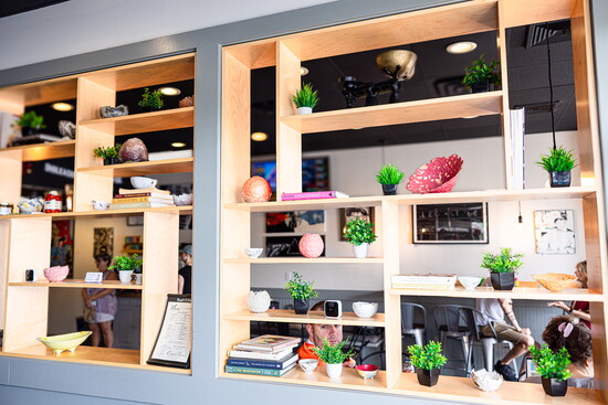“We changed the windows and opened up the wall to let the light in,” he says. “Then added some abstract shelving, a bench. We lightened up the walls, then reached out to different artists to showcase and sell their artwork.”