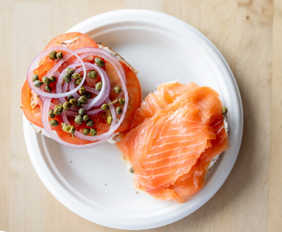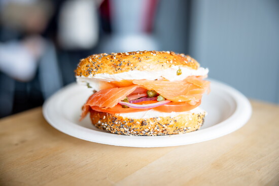 The cream cheese menu riffs on Steve’s originals—scallion, olive, strawberry—but with hand-chopped ingredients and thoughtful tweaks. Case in point? Their veggie cream cheese skips bitter bell peppers in favor of parsley, scallions, onions, carrots, and celery.