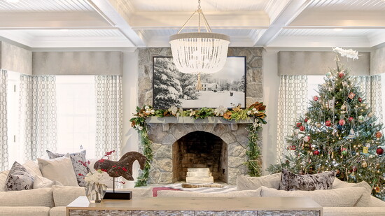A picturesque home transformed for the holidays. After the design and renovation of this quintessential Fairfield County home, the homeowners asked if we would come back and help decorate their home for the holidays. “Our initial conversation was the very best kind,” recalls Beth Krupa of Beth Krupa Interiors. “It was a referral from another happy homeowner, which is always the ultimate compliment.” The homeowners desired their home to have a casually elegant vibe, comfortable yet luxurious, and most importantly, feel warm and inviting. Many of the rooms, like the family room and dining room, were designed around celebrating holidays and special occasions with family and friends. This was achieved not only with the types of furniture specified but also with the fully customized audio/visual smart speaker technology system installed throughout the first floor. Cue holiday music playing throughout the house.