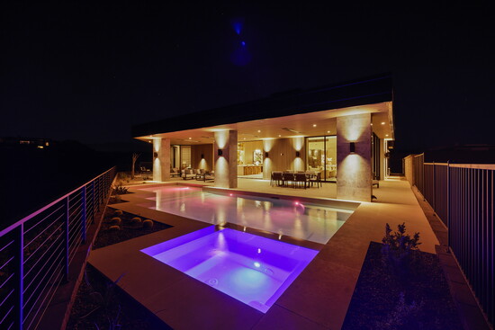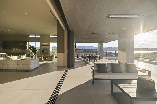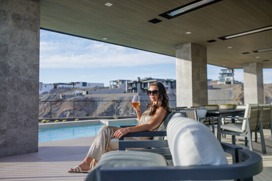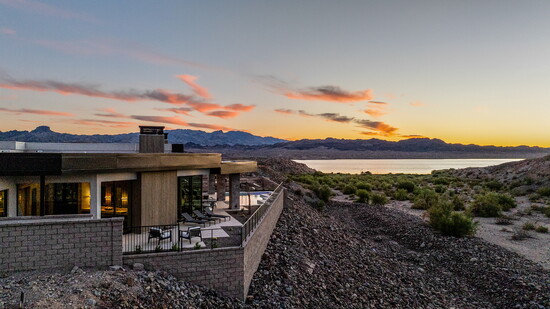 Outside, an 800-square-foot veranda stretches over a curved pool and a Jacuzzi powered by sixteen jets. The view is endless… desert, lake, and sky.