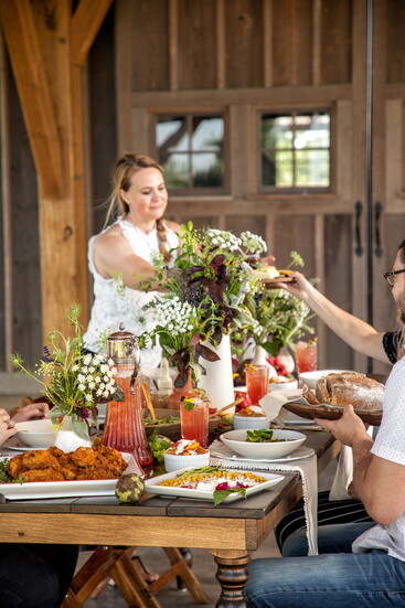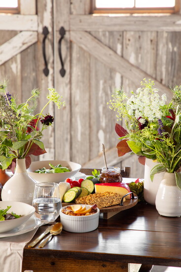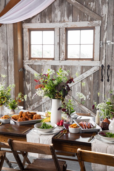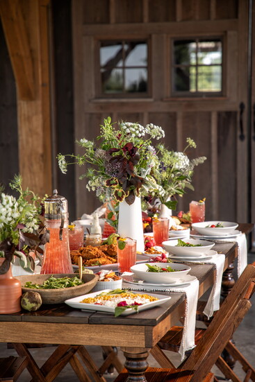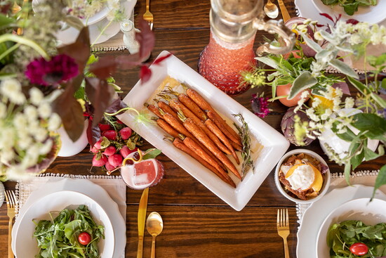 There’s no better way to welcome fall than with a cozy gathering of friends and family around a beautifully decorated table filled with comfort food. From the first sip of a smoky Mezcal cocktail to the aroma of freshly roasted vegetables and herbs, this farm-to-table dinner is brimming with character and flavor. Earthy ceramics and rustic arrangements of locally foraged blooms set the perfect scene, while each dish invites everyone to slow down, savor, and enjoy the simple pleasures of a good meal.