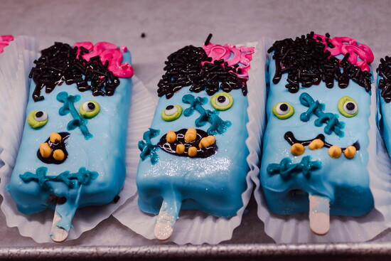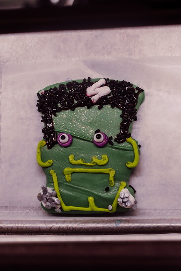 One of our more Americanized offerings includes decorated cookies. We have them throughout the year, but I think our Halloween ones are the most fun because we have a lot of really cool designs for fall and Halloween-like skulls, jack-o'-lanterns, little ghosts, and spiders.