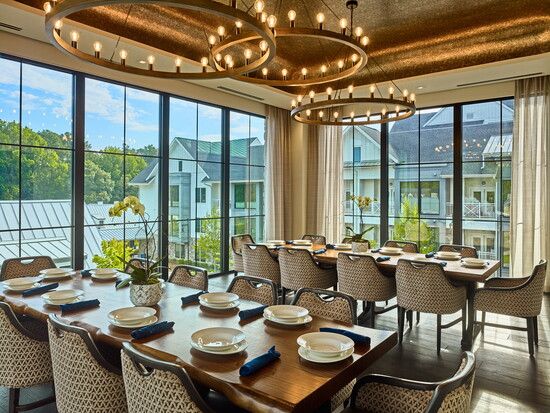 The latest addition is The 119 . Located on the west side of the community, The 119—named for the new Alpharetta highway address—carries forward the same thoughtful design with a contemporary edge. Expansive windows look out onto the plush pavilion of cottages and bungalows, while the private dining space offers 270-degree views of the East building, bungalow pavilion and encompassing treeline. “The 119 was an opportunity to elevate the dining experience to levels above other senior living communities by bringing unique ingredients, classic techniques and passion to the plate," says Culinary Director JP Burns.