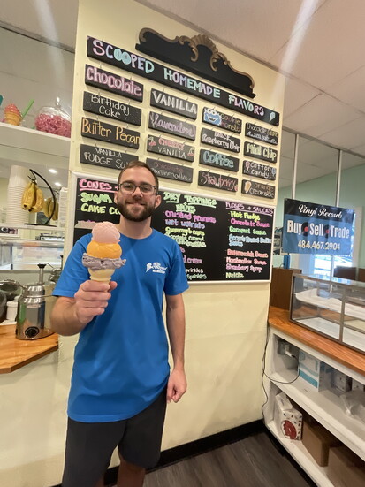I scream, you scream, we all scream for… ice cream from Scooped in downtown Media! Scooped is known for its homemade ice cream, creative flavors, and even a side passion for vinyl records. It is now under the ownership of Kyle Lefkof, who purchased the business from his uncle in January 2024.