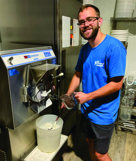 Kyle draws inspiration from the community when experimenting with unusual flavors. He partners with Burlap and Bean Roastery to create lavender vanilla flavor, and he looks forward to working with local farms to bring new and creative flavors in the future.