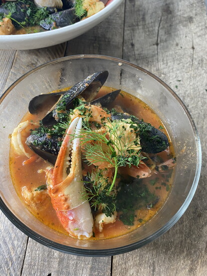 A luxurious nod to the Italian-American Feast of the Seven Fishes—traditionally enjoyed on Christmas Eve—Chef Jennifer Parker’s cioppino layers rich seafood flavors in a fragrant tomato-saffron broth, creating an elegant, family-style centerpiece for the holidays.