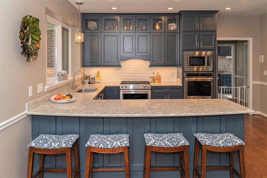 For this kitchen remodel, Nichelle wanted to replace wasted space with more storage and try something new—blue cabinets. Knowing that Nichelle is a self-professed “neat freak,” Greg and Steven told her fingerprints would show more on painted cabinets. They suggested she first try them out in two bathrooms and a laundry room. After her year-long tryout, Nichelle was ready to add the blue cabinetry to her kitchen.
