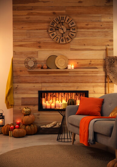 - Create a warm interior with layered throws, pillows, and flameless candles.