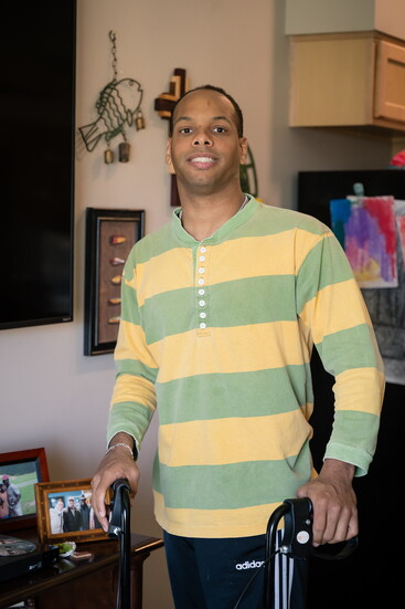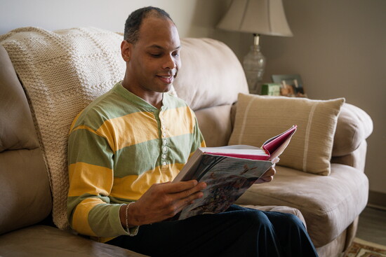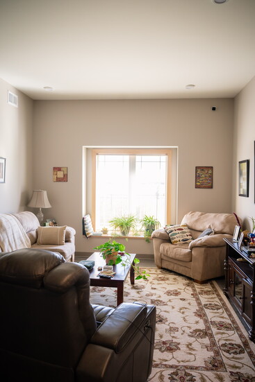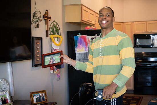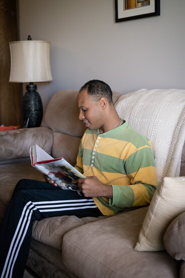 Ask thirty-four-year-old tenant Josh what he likes most about living at Sheltering Tree in Papillion, and he’ll admit that he likes to hang out with his friends, play basketball, and garden, especially his tomatoes and cucumbers. He also loves spending time in his apartment surrounded by what he loves, including framed photos, plants, and plenty of books. In fact, right now he’s reading “Harry Potter and the Sorcerer’s Stone.” Sarah, Josh’s mom, explains that Josh works at Hy-Vee and won the part-time employee of the year award!