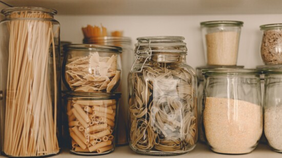 First things first: finding storage containers that suit your space will save the shelf life of dry goods and help you keep track of what you have. These don’t need to be the latest and greatest; Mason jars come in a variety of sizes from tiny to surprisingly large, and can be swapped out for smaller jars when a pantry staple is running low. Find something that works well for you, and run with that!