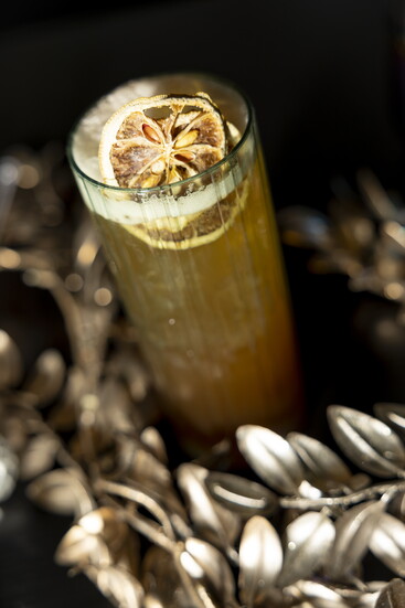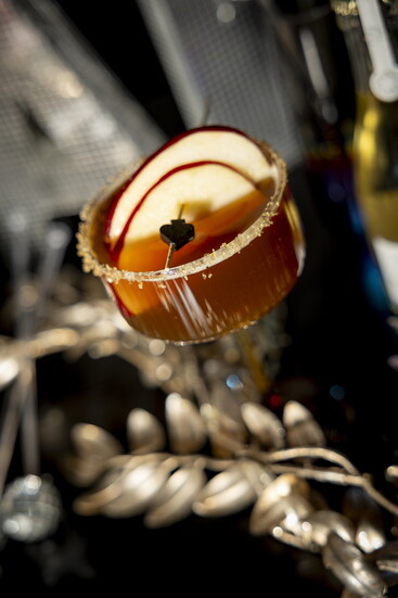 A standout featured cocktail is “Smoke & Zenfire,” which combines the tea-based Plaid Circus Kimono Dragon with lemon aperitif, smoky agave, blood orange syrup, and a hint of habanero tincture for a warming kick, topped with a splash of lemon seltzer. Another specialty, “Big Apple Spice,” provides a wintry take on a classic Manhattan, featuring zero-proof whiskey alternatives, herbal amaro, bitters, and apple spice syrup rimmed with golden sugar and garnished with fresh apple slices.