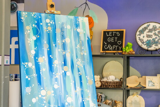 Indigo Cottage Crafts serves as more than a studio, however. Offering a place for customers to come together after their time creating with a full-service bar that includes cocktails, mocktails, sodas, and kid-friendly treats like popcorn and cotton candy.