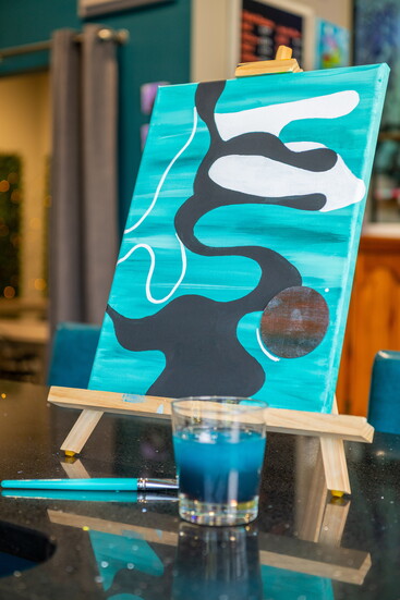 Another favorite is the acrylic pour experience. Guests learn techniques like the “dirty pour,” using Indigo Cottage’s special in-house paint mix. “You don’t need an artistic eye to get something truly beautiful out of it,” Brandy says. “Everyone needs a creative outlet. I often remind people that they don’t need an artistic background to do something artistic.”
