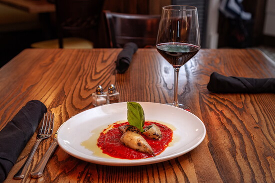 The Details Cabernet Sauvignon, Sonoma County 2021 then accompanied mushroom-stuffed calamari. Earthy portabella and shiitake mushrooms, combined with spinach, feta, and a rustic tomato ragù, matched beautifully with the Cabernet’s structure and richness.