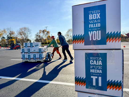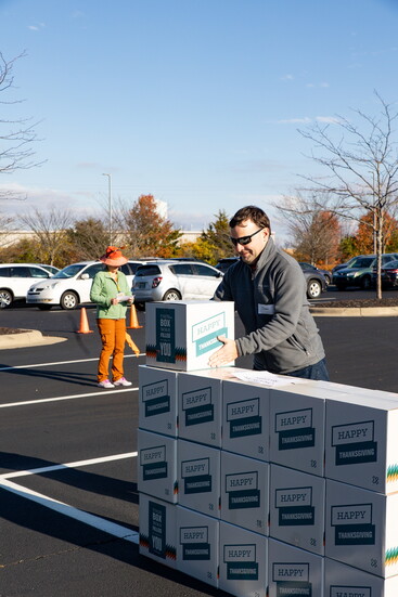 In the weeks leading up to Thanksgiving, the Crossroads community receives a shopping list and fills large boxes with enough food to provide a full holiday meal for an entire family. Those boxes are then distributed through partner organizations to families in need. Each year, this effort reaches 13,000 families, feeding more than 110,000 people across communities where Crossroads has sites.