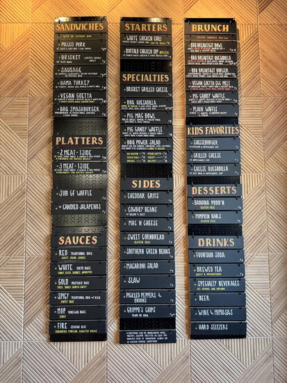 Take note, there’s a hidden gem on the menu. The one dish that should not be missed: The Pig Candy Waffles. Yep, we said waffles. Fluffy, crispy, gluten-free waffle batter is cleverly pressed with their signature pulled pork, then served with a house-made peach maple glaze and a white BBQ sauce (their most popular!) on the side. Whether you choose to dip in savory or sweet, this dish will not disappoint.