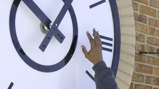 A stereo system sized stack of battleship gray boxes on the ground floor automatically adjust the minute hands, each as long as an average Smyrna Elementary School 2nd grader is tall, as needed for Daylight Savings and rare power outages. For Fall Back, the boxes command the minute hands to lay dormant at 2am Sunday morning for an exact hour, letting time and the Universe to catch up. For Spring Forward, pulses are sent double time to advance the minute hand one complete revolution. The hour hand, ever the faithful puppy, follows behind in precise increments, ten to each hour. “Like setting a wristwatch,” says Smyrna’s Facilities Maintenance Tech Alex Warner, whose responsibilities include, among other things, keeping the monster clock and its serenade punctual.