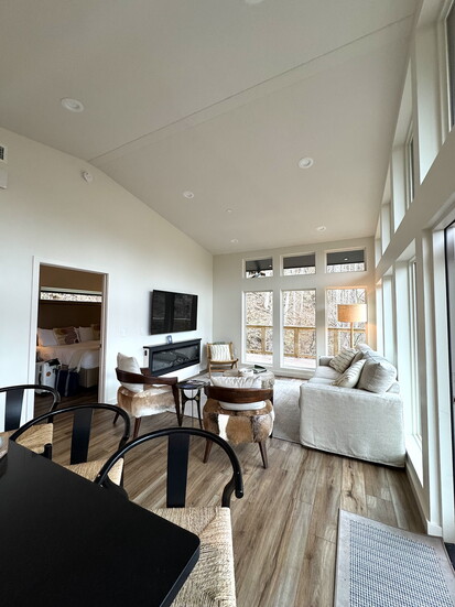 The NOC’s new bungalow-style cabins, The Hemlocks, are modern one and two-bedroom homes with wrap-around decks and expansive views from a vaulted great room with an electric fireplace, huge TV and kitchenette. The River’s End Restaurant just down the hill is open year-round, serving comfort food, a really beefy, thick chili and great service.