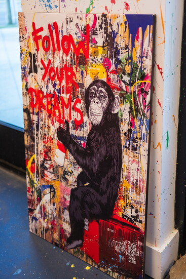 The Griffins are there to offer tips and tricks, but participants are free to take their design in any direction they choose. Some opt for color blocking or a traditional floral aesthetic; others might do anime characters or go full-on Pollock with a burst of paint splatter. As the paint-covered tables and walls show, mess is welcome.