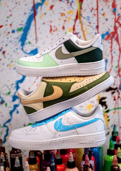 “We recommend new, all-white leather sneakers because the paint holds better,” Emily says. “Nike Air Force 1s make a great canvas for beginners.”