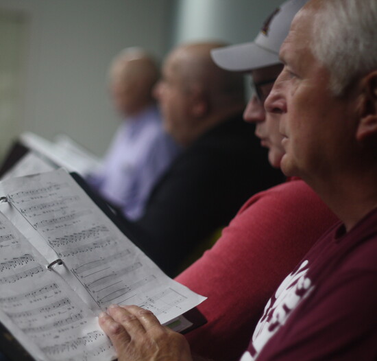 But the highlight of every year is the Big Sing, a weekend gathering of men’s choruses from across the Upper Midwest. “This coming April, we’re going to Appletown, Wisconsin,” Jim says. “We’ll have 13 or 14 choruses performing over the weekend. Each group sings two numbers for adjudication and receives feedback from directors. There are workshops, sight-reading sessions, and a big Saturday night concert with about 200 singers on stage.”