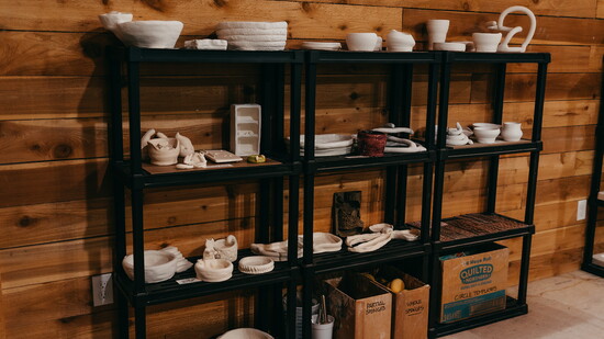 From the cedar-lined walls to the warm ambiance wrapping around you like a cozy blanket, Mud & Merlot greets every guest with a full-bodied blend of rustic charm and earthy inspiration. Even the cedar’s scent seems to coax smiles out of visitors before their hands ever touch clay. Once inside, curiosity kicks in—guests stroll from shelf to shelf, admiring creations in every stage of metamorphosis like kids in a candy store, whispering thoughts like, “I want to make something like that,” as they fall in love with a stranger’s art.