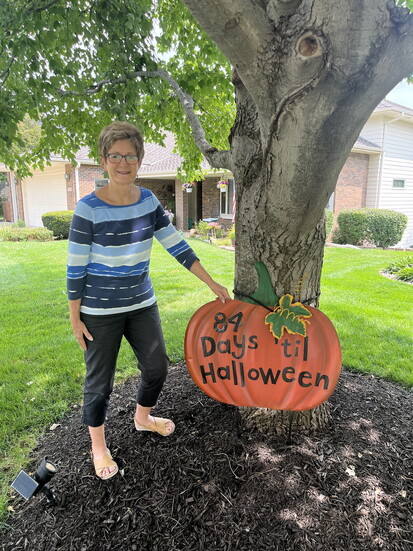 Tucked away in a quiet Papillion neighborhood on Western Hills Drive, Bob and Bindy Frederick have been doing a Halloween countdown since late August. Neighborhood children check daily to see if Bindy has changed the number on the giant pumpkin in the front yard, and she never disappoints.