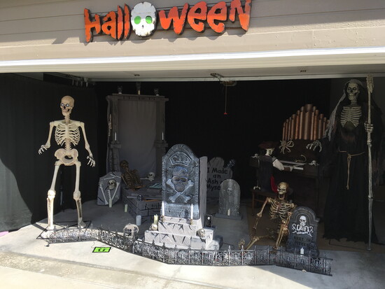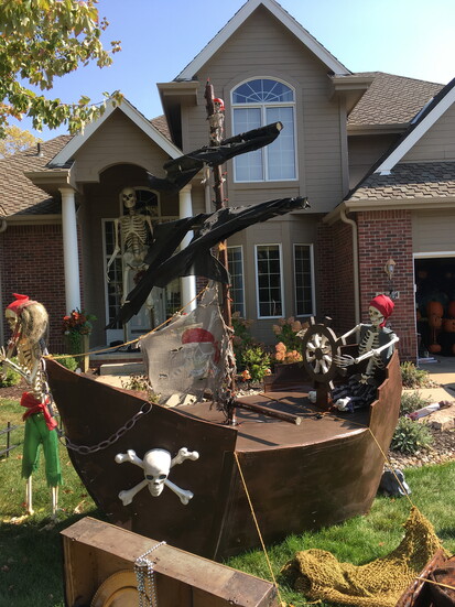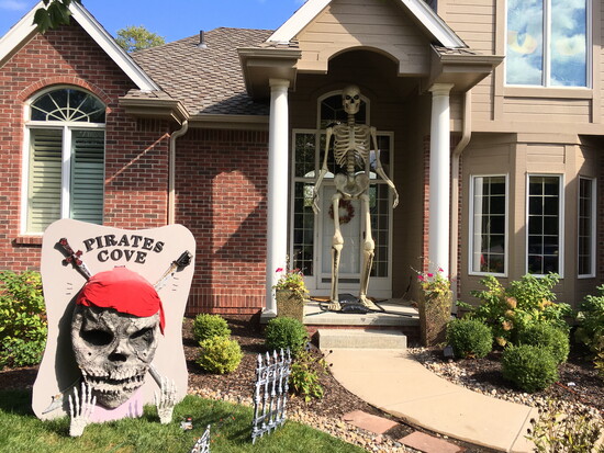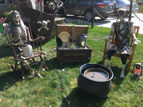 Before the big day arrives, the lawn will host a nine-foot pirate ship, a ghostly musician, talking pumpkins, a giant skeleton, and various spooky displays.