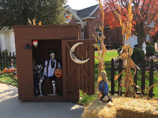It all started when the couple moved to Papillion from Gretna forty-five years ago. Bob asked his dad if he would like to build a coffin for a Halloween scene on the lawn. And maybe an outhouse.