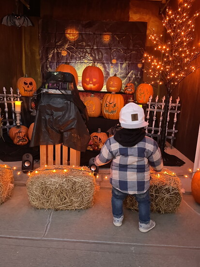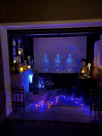 “The first year, it was too scary,” Bindy says. “We had a haunted mansion theme with speakers in the trees and a big, deep voice. But it scared the little kids, so we changed it after that.”