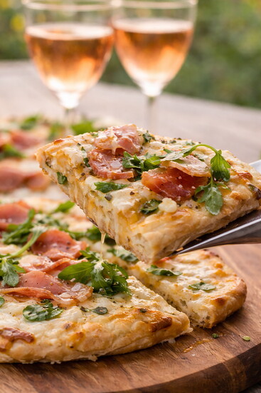 Top with fresh arugula, drizzle generously with local honey, and finish with cracked black pepper and flaky sea salt. For a bright finish, add a light squeeze of fresh lemon or a sprinkle of shaved parmesan. Slice and serve immediately alongside a chilled glass of Spicewood Vineyards 2024 Grenache Rosé. Perfect for spring evenings on the patio.