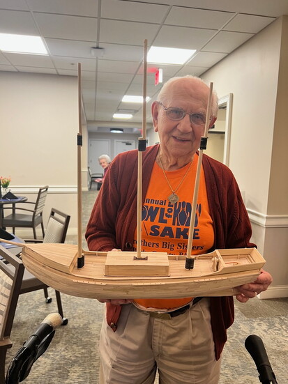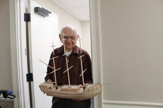 Model building, which he has pursued since his youth, is another one of his interests, and to this day, he continues to apply his skills. The facility allowed him to convert a storage room into a woodworking shop and store all of his tools there. “I can spread out a plan and work on it and not have to pick it up and put it away every time I stop working,” says Robert. “It's a nice little room with two tables in it.” It's actually available to other residents as well.