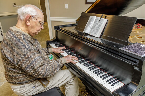 Staying active, both mentally and physically, is essential to Robert. “If you don't use it, you lose it,” he says. “I play bridge a couple of times a week, there’s a Sit and Be Fit class available five times a week, and there is also musical entertainment. I've gotten to know some of the performers, and I've actually performed a couple of numbers with them.”