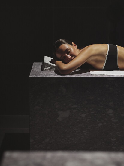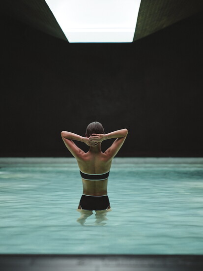 The facility also includes six thermal pools: two hot pools at about 104 degrees, two cold pools at 45 and 50 degrees, a neutral pool at 98 degrees and a salt pool at 98 degrees. The cold pools are intense but are commonly used to help reduce muscle soreness and support post-exercise recovery. The layout allows guests to move between hot and cold circuits, saunas and soaking pools to create a personalized routine.