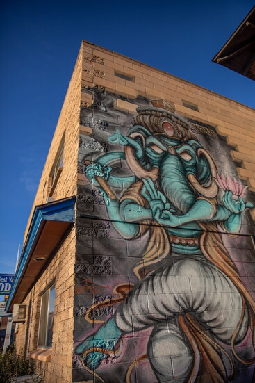 While some murals stand out like the vibrant orange flowers in local muralist Erik Burke’s “Back In The Day Is Now” on the South facing wall of Kramer’s in Midtown or the vast abstracts of the Reno City Hall parking garage (pictured), others take a bit more work to see. The Ganesha mural in Midtown Reno, often described as a colorful mandala, is located in an alley near the old Recycled Records, generally north of Moran Street, created by artist Naem. Another gem is the (pictured) Lincoln piece, which spans across a large wall along 4th Street (Old Hwy 40), not far from State Historical Marker 220 (which commemorates the ‘Fight of the Century’ between Jack Johnson and Jim Jeffries in 1920).