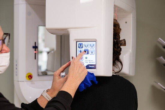 Paired with these smaller digital X-rays is a panoramic imaging machine that captures a complete view of the teeth, jaws, sinuses, and supporting structures. This wide-angle perspective allows the team to assess bone levels, wisdom teeth positioning, airway health, and jaw joint concerns—all with clarity and minimal radiation exposure. The combination of comfort and accuracy reflects the practice’s dedication to both patient experience and diagnostic excellence.