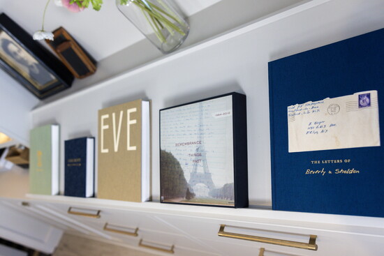 For many clients, the most difficult part is editing: sifting through tens of thousands of digital photos, boxes of artwork, and physical memorabilia. Maria and her team shepherd them through the process, sometimes reproducing materials as they are, other times transforming them, rewriting a letter by hand, re-photographing an object so it feels dimensional.