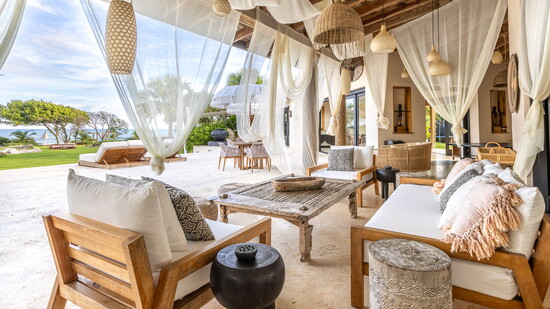 Our hostess, Kristy Petrillo, is a real estate developer and lifestyle trendsetter who splits her time between her homes and 14 luxury vacation properties in Blue Ridge, Georgia and the Dominican Republic. Her design aesthetic is boho but refined. The sunken living room at Villa Cantamar opens completely to the terrace, with a wet bar (kept full of your preferences, thanks to the stealth staff), soft lighting and deep white sectionals for lounging and cuddle puddles with the grandchildren.
