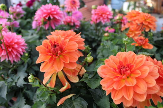 During peak season weekly shipments of annuals arrive at Miss M’s, largely grown locally in Indiana. They have everything from hanging baskets to combination planters and bedding flats to gallon-sized annuals, including favorites such as Begonias, Dahlias, Geraniums, Impatiens, Marigolds and Petunias.