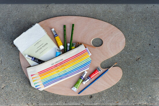 Organize art supplies in style with this Mini Zippered Pouch. Made from 100% cotton and featuring a colorful vintage image from the Cavallini archives, it’s perfect for pencils, markers, tiny sketchbooks and small essentials. A delightful, affordable gift for kids of all ages.