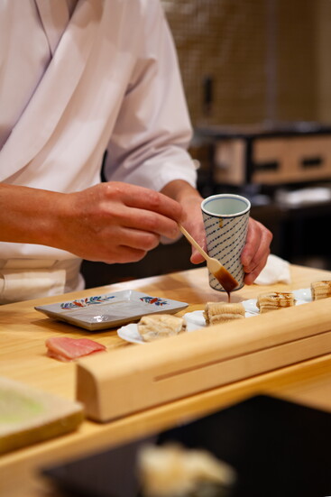 We just looooove to drown our sushi in soy sauce. In Japan, chefs brush on a whisper of sauce themselves—just enough to highlight, never to smother. If you do dip, it’s fish side only, not rice side first.