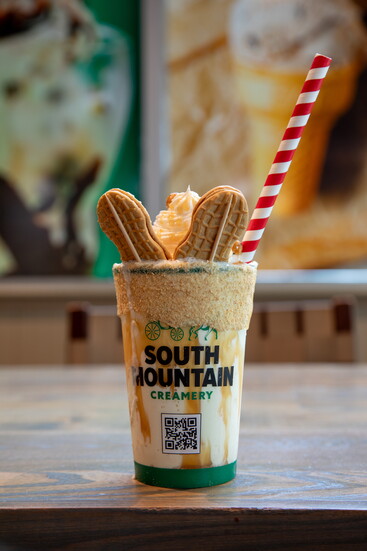 South Mountain Creamery – “Gone Banana’s” Loaded Milkshake The Gone Banana’s milkshake at South Mountain Creamery is a nostalgic daydream served in a cup. Built on their Nutty Nana ice cream, it’s layered with ribbons of caramel and presented in a glass rimmed with vanilla icing and crushed graham crackers. Towers of whipped cream, a dusting of graham cracker and two full-sized Nutter Butters make this shake part dessert, part spectacle. It’s playful and wonderfully over-the-top—so much so that pairing it with anything else feels unnecessary. This milkshake is the main event, the side act and the encore all in one. SouthMountainCreamery.com