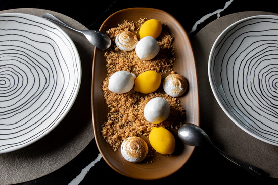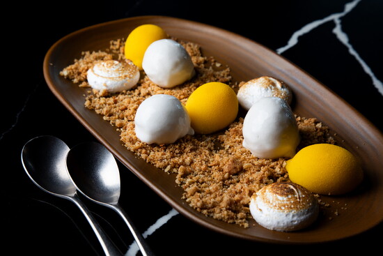 Wye Oak Tavern – Lemon Meringue & Apple Dumpling At Wye Oak Tavern, dessert becomes art with their deconstructed Lemon Meringue. Sunny spheres of lemon curd spill their tangy brightness onto the plate, surrounded by airy peaks of torched meringue and the buttery crunch of coconut streusel. A cool scoop of coconut sorbet refreshes the palate, creating a warm, cold, crisp and silky symphony of textures. It’s the perfect finale for anyone seeking a refined twist on a timeless classic. Harmonize with Ravines Wine Cellars Dry Riesling from the Finger Lakes. A true ode to fall flavors, the Apple Dumpling boasts tender, caramel-glazed apple nestled within a golden, flaky pastry that soaks up every drop of buttery sweetness. A drizzle of warm caramel sauce pools luxuriously over the dessert, mingling with the crunch of a cereal granola, served alongside a generous scoop of ice cream. Enjoy it with the Sun Rush cocktail whose warm spice, citrus brightness and subtle floral notes beautifully complement each decadent bite. WyeOakTavern.com