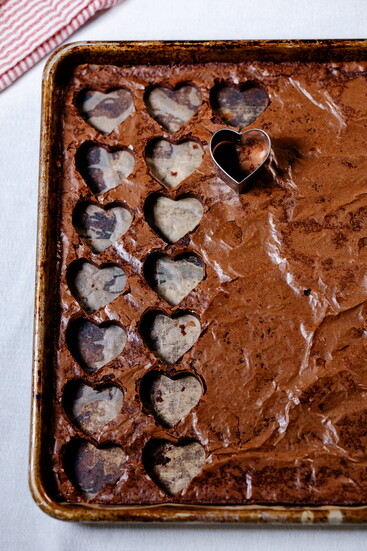A freshly baked pan of rich, chocolatey brownies may be the perfect Valentine’s Day treat. When baked on a large baking sheet, this recipe delivers a relatively thin bite, perfect for cut-out hearts and cutesy shapes for all the sweethearts in your life. Box them up in pink pastry boxes for thoughtful gifting or serve on a platter with whipped cream and berries, or sprinkles for a little festive decorating. The little ones in your life will especially love these.