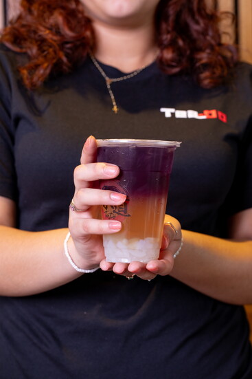 This striking ombré drink—deep indigo fading into lavender—is as much a visual treat as it is a flavorful one. Butterfly pea tea blends with the delicate sweetness of lychee and the texture of lychee jelly, creating a refreshing, floral-fruity sip that’s full of character.
