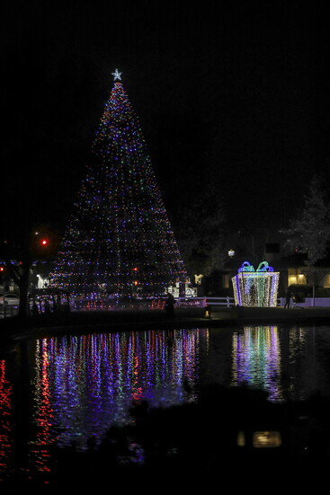 At the center of it all stands the tree. Towering and graceful, wrapped in thousands of carefully placed lights, it rises beside the Temecula Duck Pond each December — a radiant symbol of the season and a beacon for the community that gathers around it.