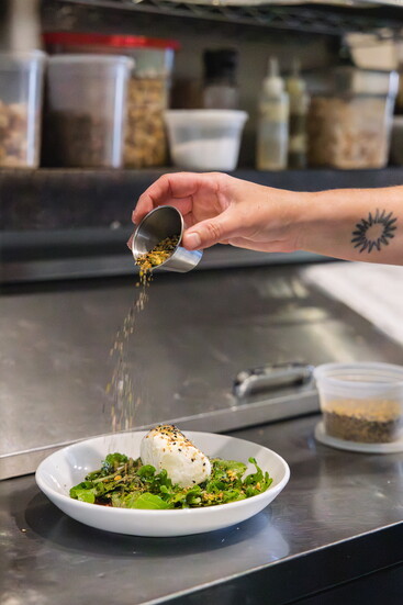 "The whole staff at Feast is welcoming and kind to each other," says Dupre. "And not everyone is from the food industry. We bring in people from a variety of backgrounds, which I think lends to our culture. It's about good, kind people. There are also many days when the kitchen is staffed entirely by women, which was not the case when I was starting out. I can trust the team to do the physical cooking, which allows me to focus on management, planning, and creating new dishes."