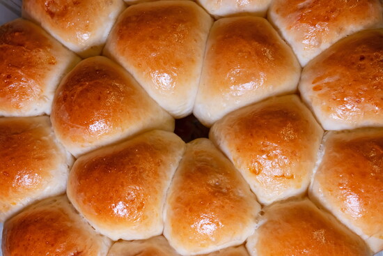 - Place milk in a small saucepan and bring to a simmer. Remove from the heat, stir in the butter and sugar and let cool. Dissolve yeast in warm water and let sit until foamy. Combine milk mixture, eggs, yeast, salt, and 1/2 of the flour in a mixer with the dough attachment and mix until smooth. Add the remaining flour, 1/2 cup at a time, and stir until a smooth ball forms.